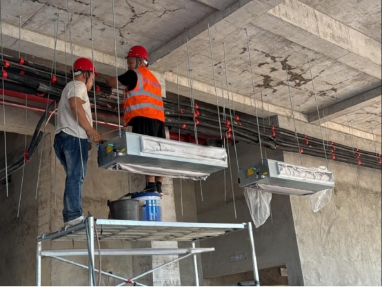 省旅發(fā)大會召開在即,重點項目國際陸港東盟集風情街建設正在緊張推進,項目的空調(diào)及熱水設施設備安裝任務落在懷化產(chǎn)投資產(chǎn)運營置業(yè)有限公司身上,必須在最短時間內(nèi)完成5棟場館、總面積1.2萬平方米的安裝工作,確保大會如期順利舉行。